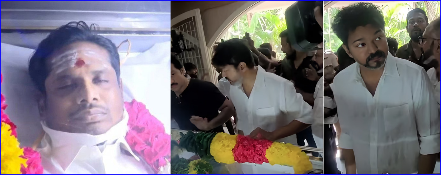 இந்த நிலையில், விஜய்யும் பாரதிராஜாவின் இல்லத்துக்கு நேரில் சென்று மாலை அணிவித்து மனோஜின் உடலுக்கு அஞ்சலி செலுத்தினார்.