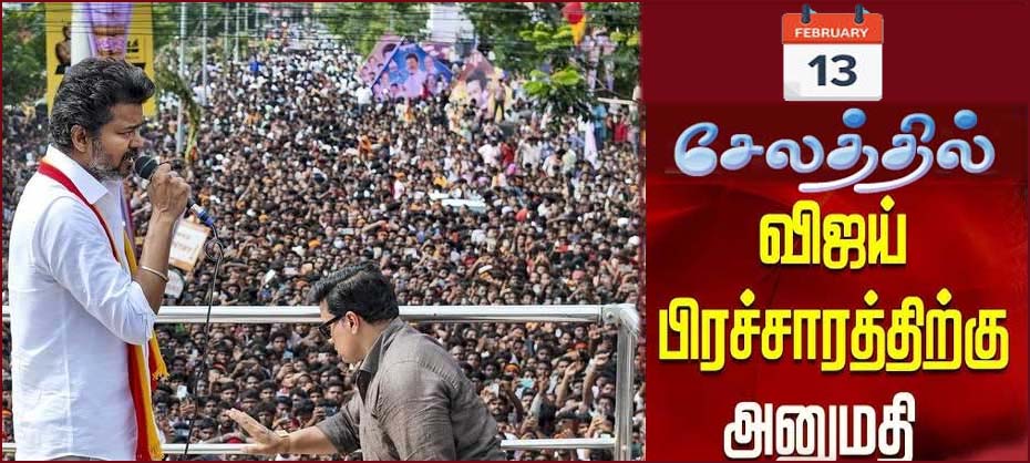 சேலம்: பிப்ரவரி 13 ஆம் தேதி சேலத்தில் விஜய் தலைமையில்  த.வெ.கவின் மக்கள் சந்திப்பு பொதுக்கூட்டம் நடைபெறுகிறது. இதற்கு சேலம் மாநகர காவல்துறை பல்வேறு கட்டுப்பாடுகளுடன்  அனுமதி வழங்கி உள்ளது.