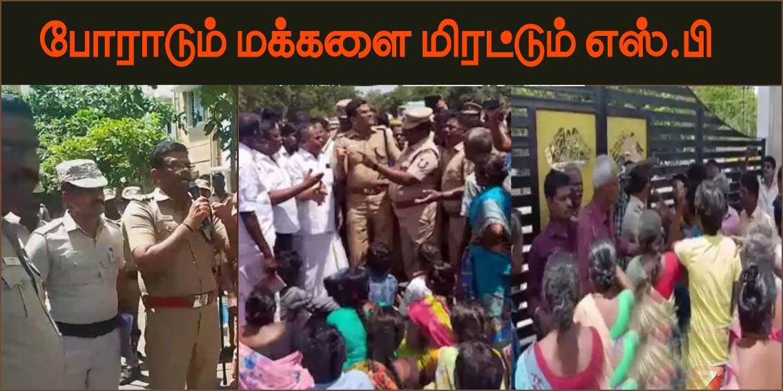 விருதுநகர்: போராட்டத்தில் ஈடுபட்ட பொதுமக்களிடம்  அம்மாவட்ட  எஸ்பி. “வேற மாதிரி ஆயிடும்” என மிரட்டி விவகாரம் சலசலப்பை ஏற்படுத்தி உள்ளது. இதை எதிர்த்து பொதுமக்கள் மேலும் குரல் கொடுத்து அங்கு பரபரப்பை ஏற்படுத்தி உள்ளது.