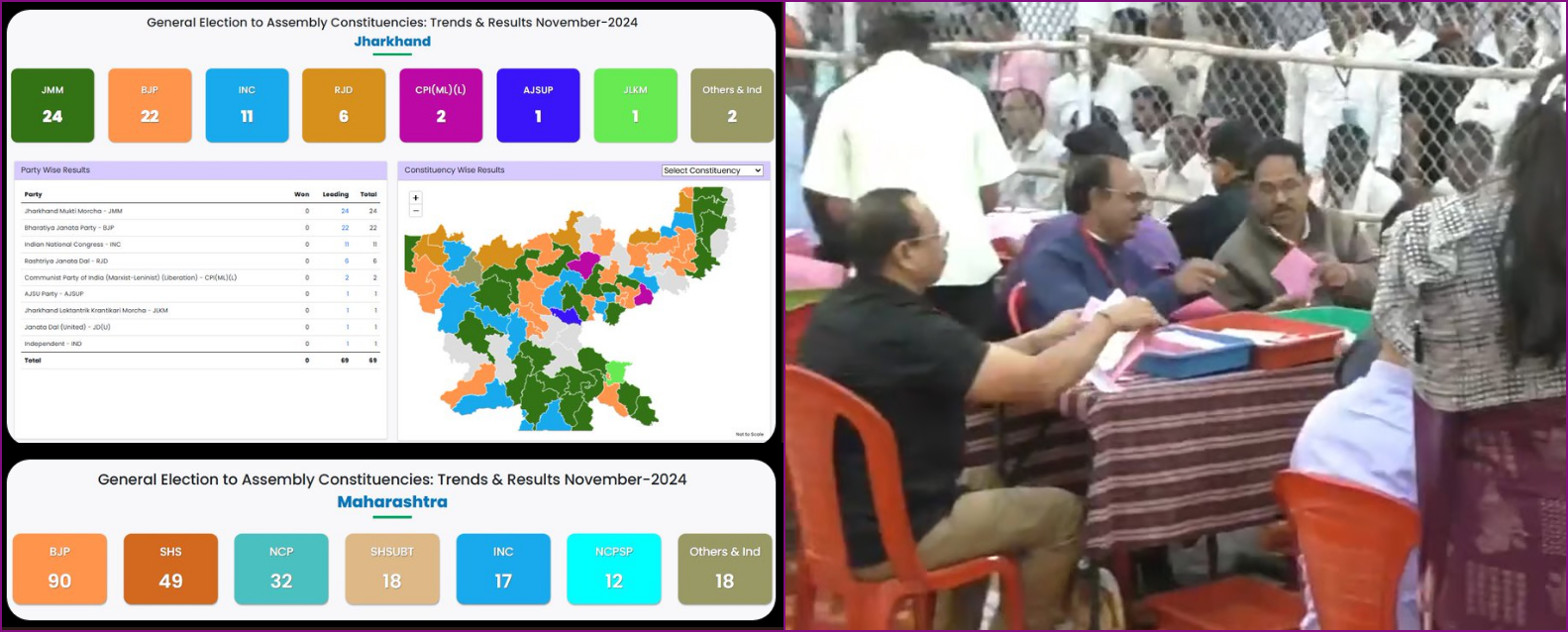 டெல்லி: மகாராஷ்டிரா, ஜார்கண்ட் மற்றும் வயநாடு மக்களவை தொகுதி உள்பட  இடைத்தேர்தல் நடைபெற்ற இடங்களில் இன்று வாக்கு எண்ணிக்கை  விறுவிறுப்பாக நடைபெற்று வருகிறது.