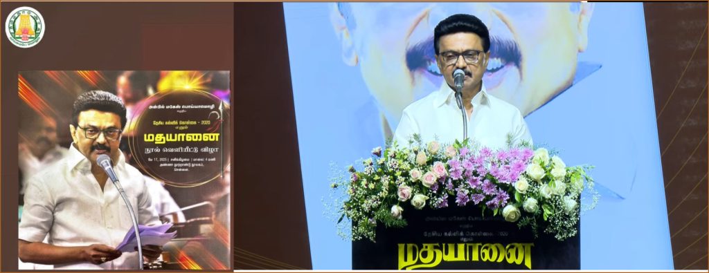 அதுமட்டுமல்லாமல், மும்மொழிக் கொள்கையை ஏற்றுக் கொள்ளவில்லை என்று ஒன்றிய அரசு தமிழ்நாட்டுக்கு தரவேண்டிய இரண்டாயிரத்து 152 கோடி ரூபாயை தராமல் முரண்டு பிடிப்பதை பற்றி உங்கள் எல்லோருக்கும் தெரியும்! இங்கே இருக்கின்ற மாண்புமிகு திக் விஜய சிங் அவர்கள் உள்ளடக்கிய நாடாளுமன்றக் குழுவே பரிந்துரைத்திருக்கிற நிதிதான் அது! மாணவர்களுக்கும், ஆசிரியர்களுக்கும் சேர வேண்டிய அந்த நிதியை தங்களுடைய ‘Petty Politics’-ற்காக ஒன்றிய அரசு தடுத்து நிறுத்தியிருக்கிறது.