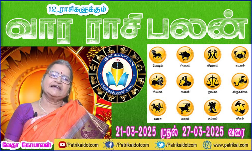 பொறுமையுடன் இருக்கவேண்டிய வாரம். எதிர்பாராத செலவுகளால் கடன் வாங்கிய நிலை மாறி, உபரித்தொகை கையில் இருக்கும். குடும்பம் தொடர்பான முடிவுகள் எடுப்பதில் சந்தோஷமான பலன்கள் இருக்கும். குடும்பத்தில் சுப நிகழ்வுகள் இருக்கும். பேச்சினால் நன்மையும் சந்தோஷமும் ஏற்படும். ஃபேமிலில உள்ள உறுப்பினர்களின் நலனில் அக்கறை காட்டுவீங்க. அவங்களும் அதை நல்ல விதமாய்ப் புரிஞ்சுப்பாங்க. அதிக விரயம் ஏற்படும் வாரம் என்பதால மனசை ரெடியா வெச்சுக்கிட்டிருங்க. அந்தச் செலவுகள் நல்ல பலன் தரும்.சந்தோஷம் அளிக்கும். சுப காரியங்களுக்கான செலவுகள் அவை. பல காலமா ஆட்டிப்படைச்சுக்கிட்டிருந்த முக்கியமான நிதி பிரச்னைகளிலிருந்து விடுபடுவீங்க. திடீர் சந்தோஷ செலவுகளால கையிருப்பு கரைந்தாலும் பொருட்படுத் தும்படி இருக்காதுங்க. சகோதர வகையில் எதிர்பார்த்த காரியம் அனுகூலமாக முடியும்.