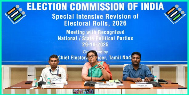 வாக்காளர் பட்டியல் சிறப்பு தீவிர திருத்தம் (SIR)( தொடர்பாக தமிழ்நாட்டில் அங்கீகரிக்கப்பட்ட அரசியல் கட்சிகளுடன் மாநில தலைமைத் தேர்தல் அதிகாரி அர்ச்சனா பட்நாயக் ஆலோசனை மேற்கொண்டார். இதில், கலந்து கொண்ட அரசியல் கட்சிகளின் பிரதிநிதிகள் தங்களது நிலைப்பாட்டை பதிவு செய்தனர்.
