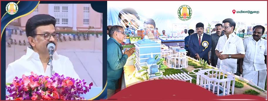மயிலாடுதுறை மாவட்டத்தில் நடைபெற்ற அரசு விழாவில் ரூ.432 கோடியே 92 இலட்சம் மதிப்பீட்டிலான 47 முடிவுற்ற பணிகளை திறந்து வைத்து, 12 புதிய திட்டப் பணிகளுக்கு அடிக்கல் நாட்டி, 54,461 பயனாளிகளுக்கு நலத்திட்ட உதவிகளை முதலமைச்சர் மு.க.ஸ்டாலின் வழங்கினார்.