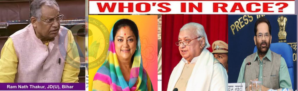 இந்தப் பதவிக்கான போட்டியில் மாநிலங்களவை துணைத் தலைவரும், ஐக்கிய ஜனதா தளத்தின் எம்பியுமான ஹரிவன்ஷ் சிங் முன்னணியில் இருப்பதாக தகவல்கள் தெரிவிக்கின்றன. ஆனால், தற்போது கர்பூரி தாக்கூரின் மகன் ராம் நாத்தாக்கூர்-ஐ தேர்வு செய்ய மத்திய பாஜக அரசு முடிவு செய்துள்ள தாகவும் கூறப்படுகிறது.