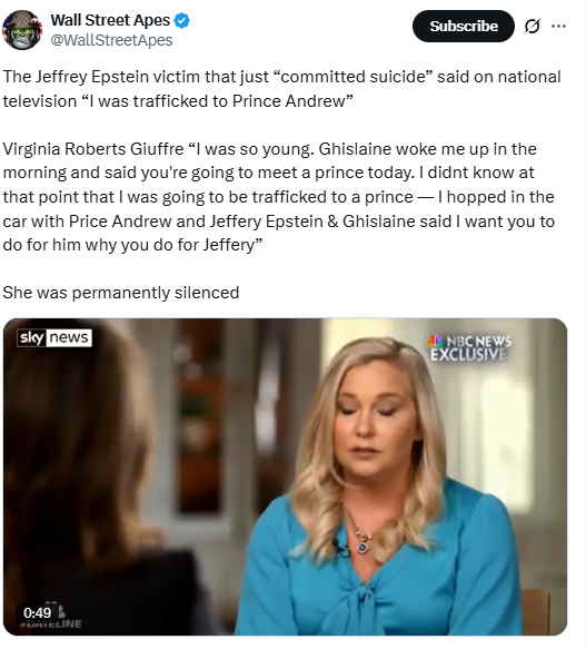 அதே நேரத்தில், ஆண்ட்ரூ வர்ஜீனியா வழக்கில் தொடர்புடைய அமெரிக்க குழந்தை கடத்தல்காரர் ஜெஃப்ரி எஃப்ஸ்டீனும் 2022 இல் தற்கொலை செய்து கொண்டது குறிப்பிடத்தக்கது.