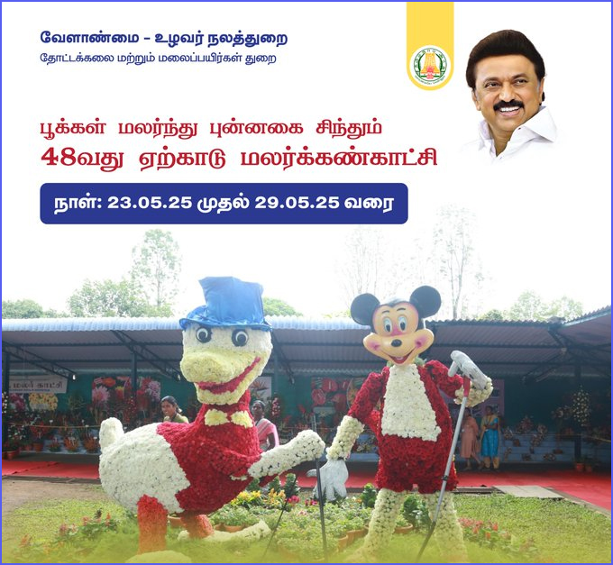 ஏற்காட்டிற்கு வரும் சுற்றுலா பயணிகளை மகிழ்விக்க ஆண்டுதோறும் கோடை விழா மற்றும் மலர் கண்காட்சி நடைபெறுவது வழக்கம். அதன்படி, நடப்பாண்டு, ஏற்காட்டில் 48வது மலர் கண்காட்சி நடைபெறும் தேதி அறிவிப்பு வெளியிடப்பட்டுள்ளது.