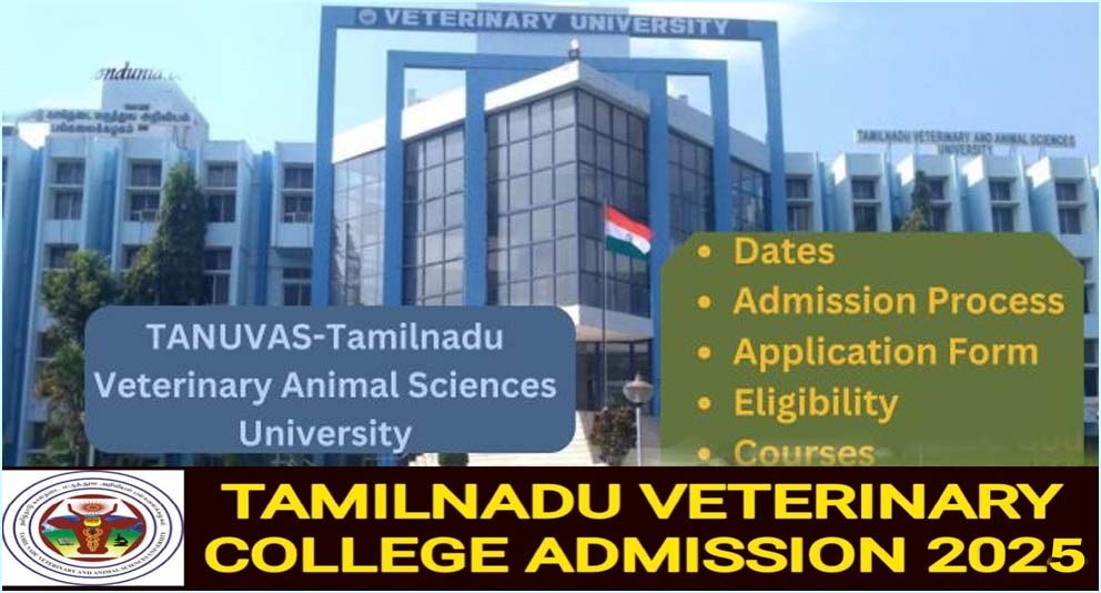 கால்நடை மருத்துவம் மற்றும் பராமரிப்பு பட்டப்படிப்பில் சேர்வதற்கு 12ஆம் வகுப்பு மதிப்பெண் அடிப்படையில் சேர முடியும். மேலும் விண்ணப்பங்களை ஆன்லைன் மூலம் மட்டுமே அனுப்பி வைக்க வேண்டும் எனவும், இது குறித்த கூடுதல் விபரங்கள் மற்றும் தகவல் கையேட்டை https://adm.tanuvas.ac.in என்ற இணையதளத்தில் தெரிந்து கொள்ளலாம் எனவும் அறிவிக்கப்பட்டுள்ளது.